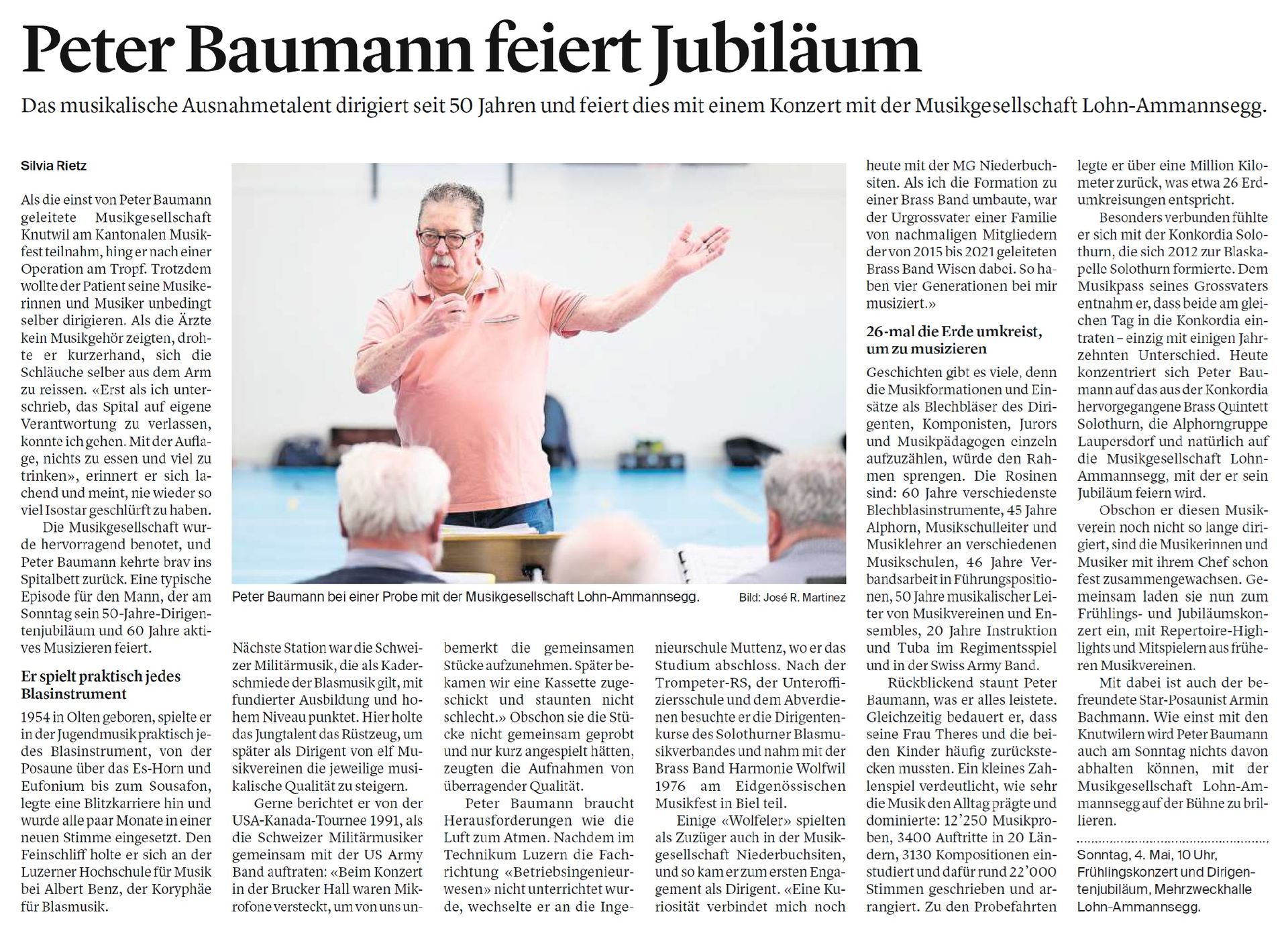In diesem Jahr war unser traditionelles Frühlingskonzert ein noch besonderer Anlass, konnten wir doch zugleich das 50-jährige Dirigentenjubiläum unseres geschätzten Dirigenten Peter Baumann feiern. 50 Jahre am Dirigentenpult - Wow, was für eine Zahl! Lieber Peter, wir gratulieren dir nochmals herzlichst!