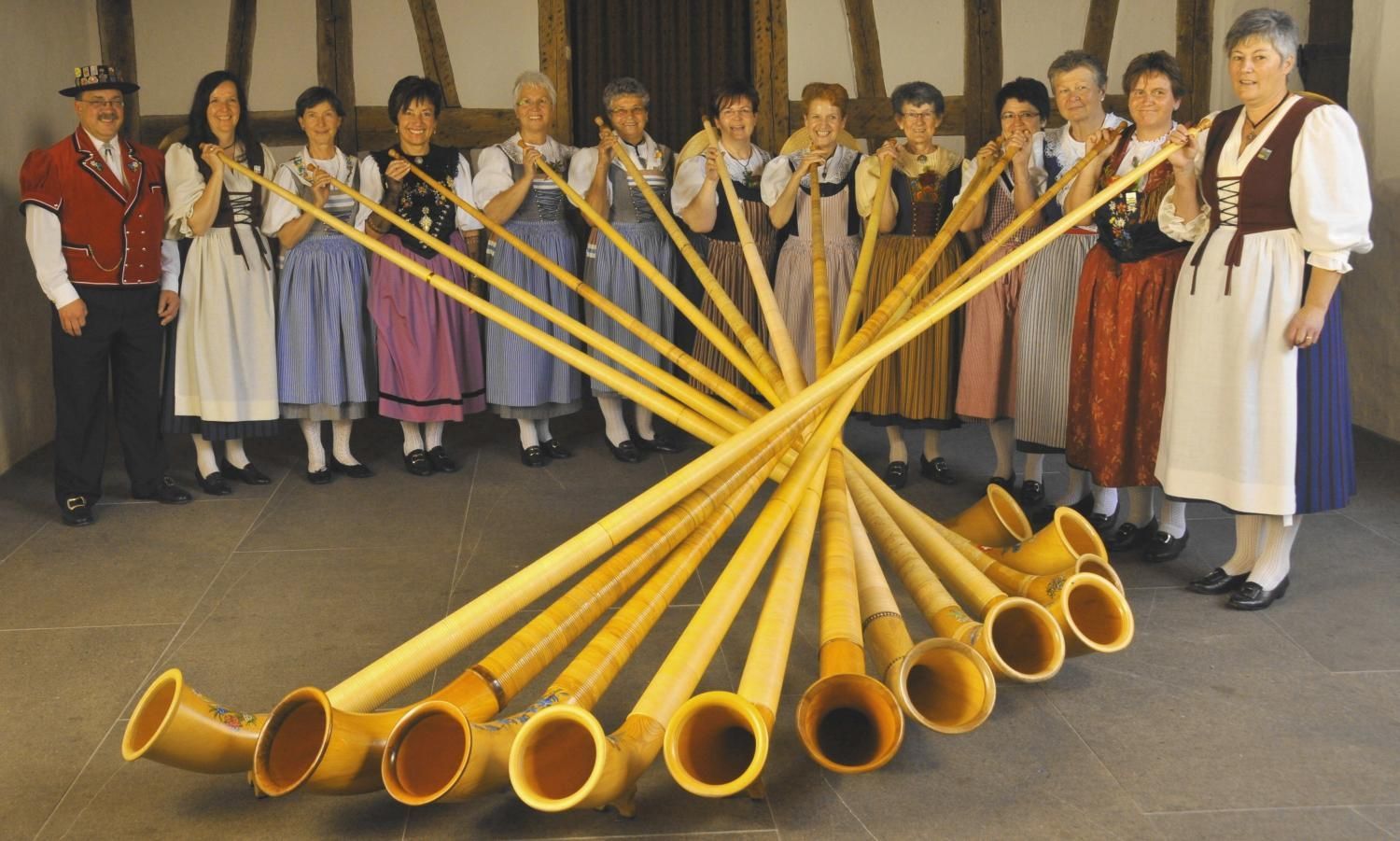Die zentralschweizer Frauenalphorngruppe Fraueschüehli Morgarten sucht Mitspielerinnen für alle Stimmlagen .