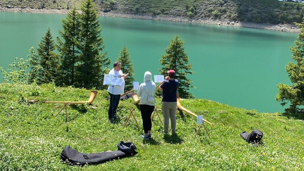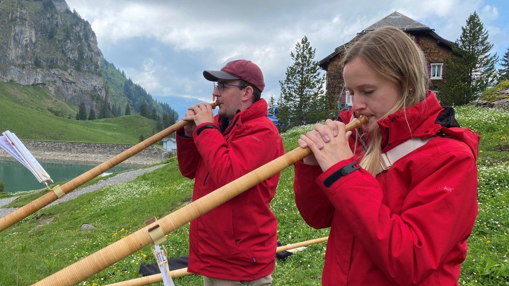 Die Alphorngruppe Laupersdorf im Probeweekend 23 am Bannalpsee