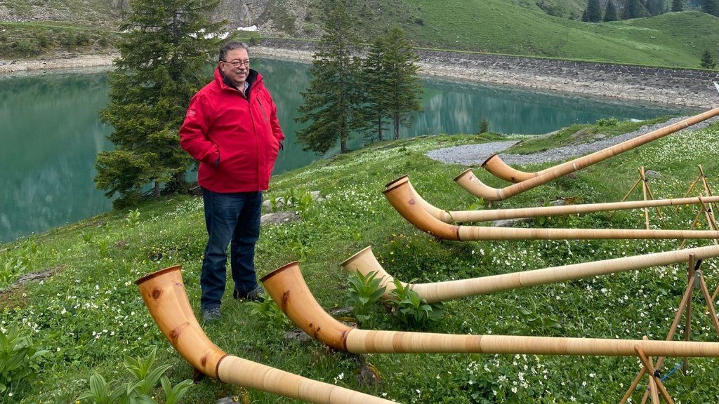 Der erfolgreiche Auftritt des Alphornquintetts (folgendes Bild) in Deutschland mit Peters gelungener Komposition