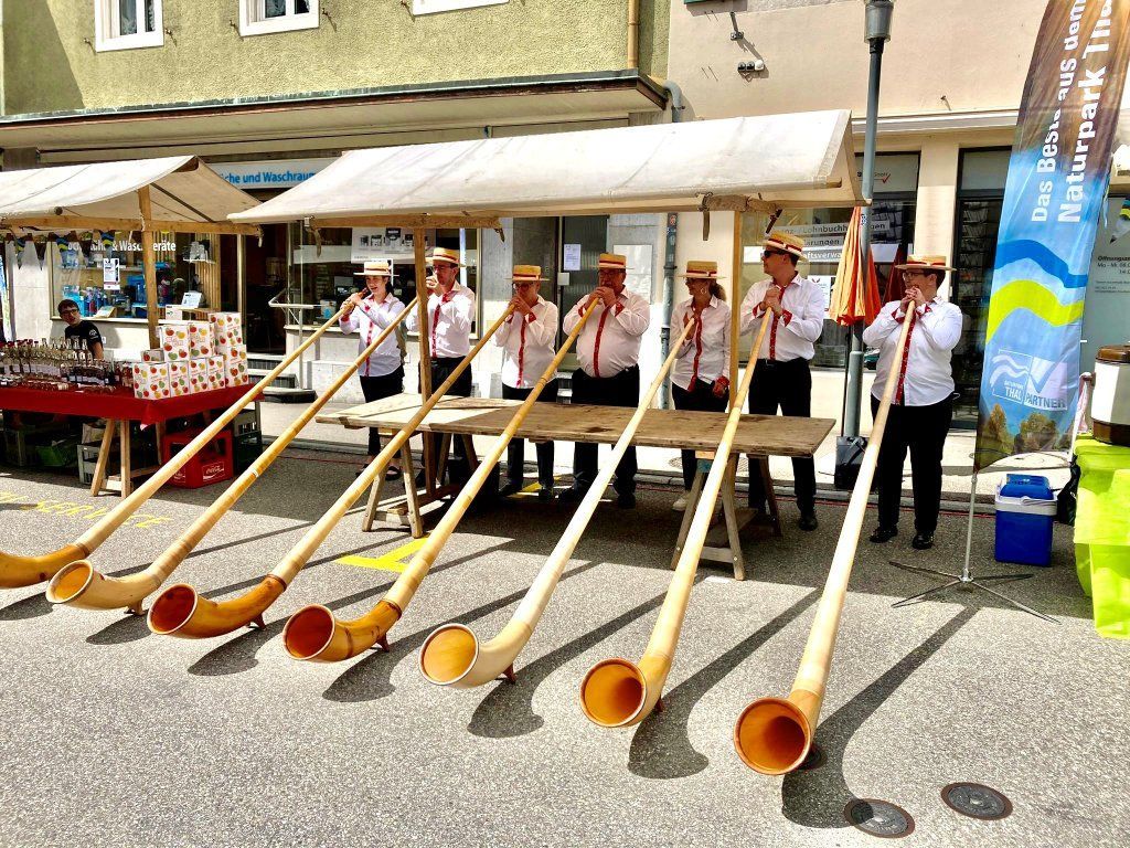 Die Alphorngruppe Laupersdorf am 23. Naturparkmäret 2023 in Balsthal