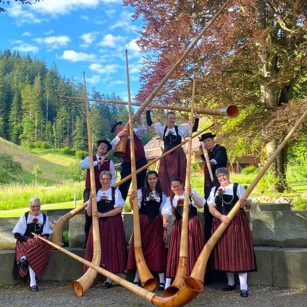 Die Alphorngruppe Laupersdorf 21 mit der kultivierten und absolut gelungenen PREMIERE anlässlich der Hochzeit von Mayas Schwester Sandra.